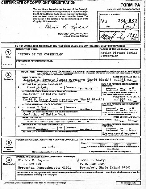Return of the CopperheadA David Black production of a Pentagram movie serialProduced by David Leary and Dan Amorello. Written by David Black. Directed by Blackie Seymour.